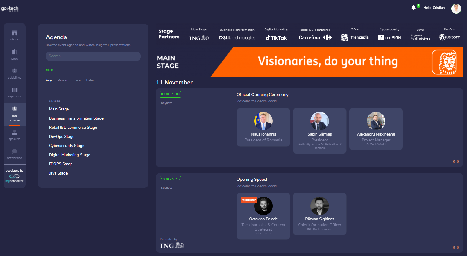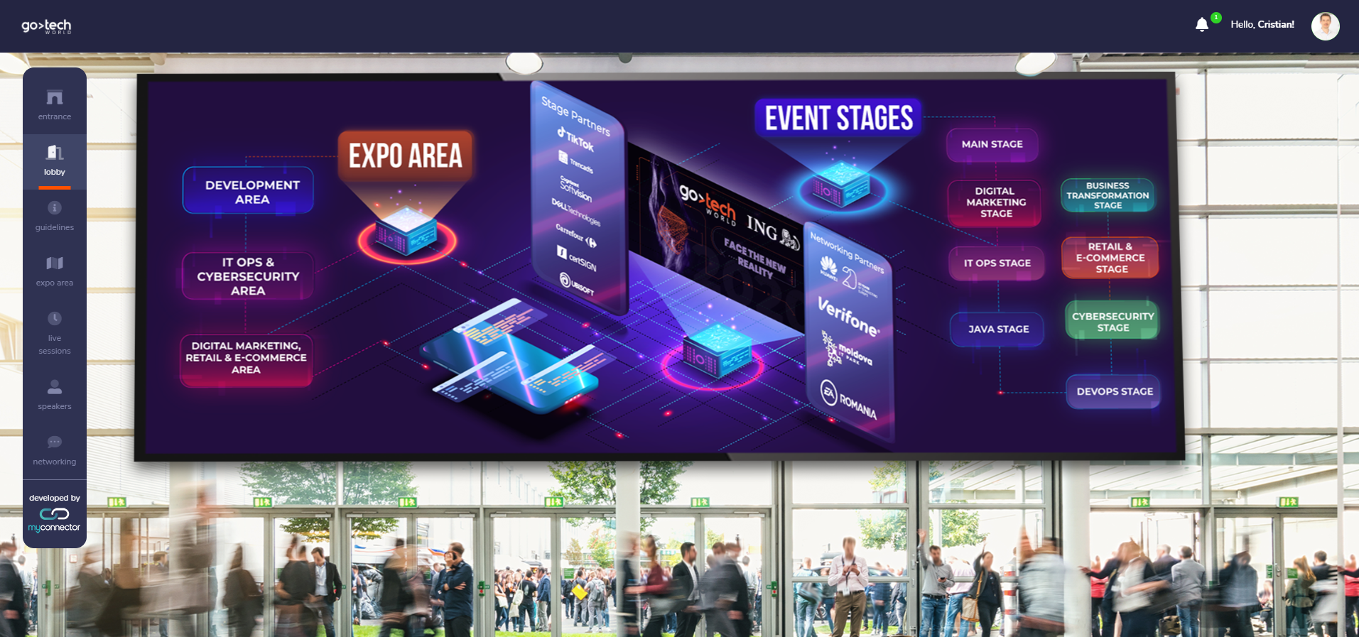 For their 2 days event GoTech World used MyConnector’s virtual event platform, as it was the only one that had enough flexibility to accommodate last minute changes with instant updates in the live event and delivered the best price/value ratio.
