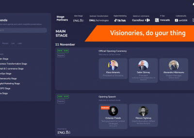 Networking module – 12.000 attendees could search each other based on the custom field used for registration: name, industry, company size, decision level, budget to be spent of tech acquisitions, solutions they are interested in. They could engage via chat, business card exchange or video calls.